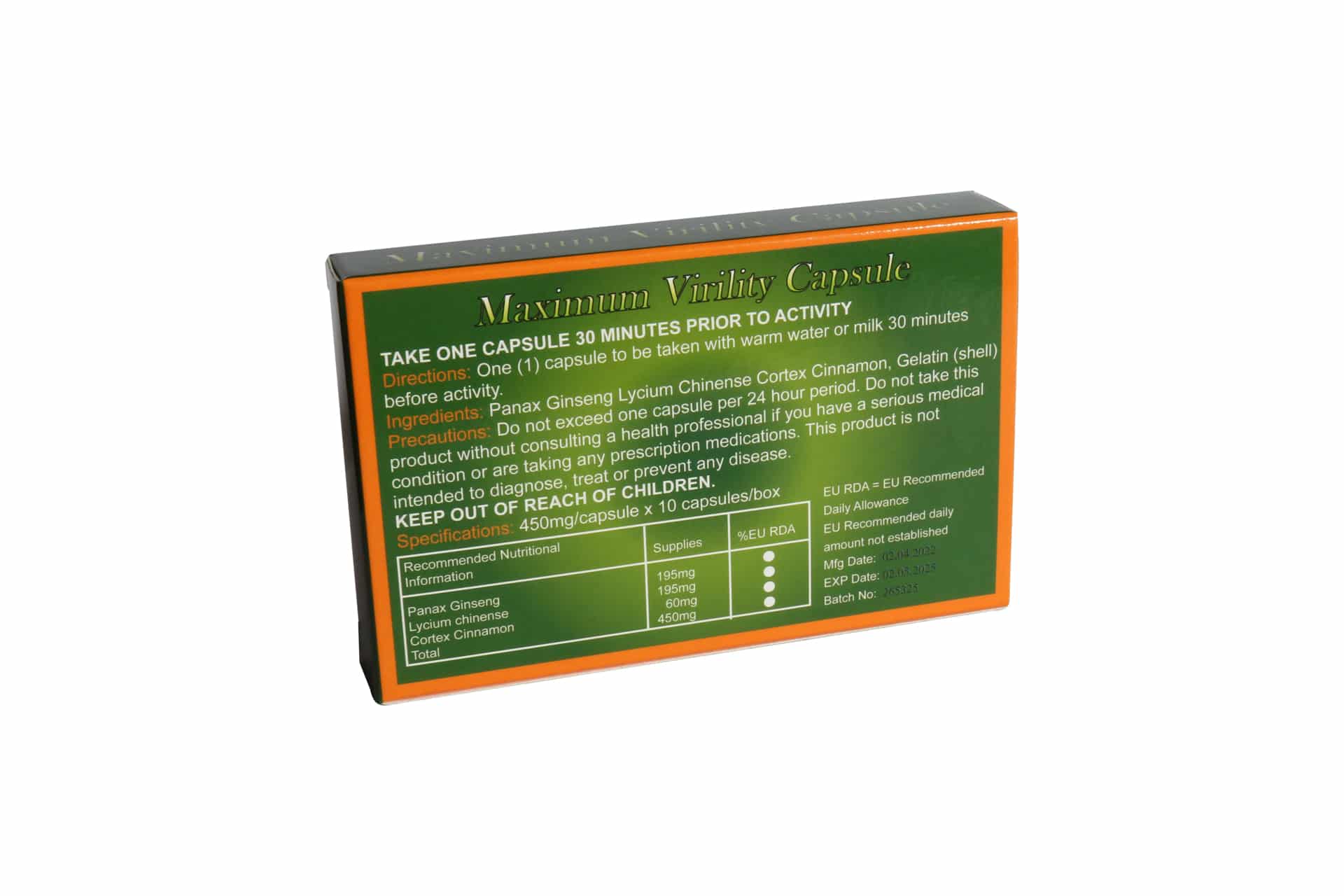 Caution – if you have high blood pressure, or take any medication or drugs (prescribed or otherwise), consult your doctor before taking Maximum Virility Pills.